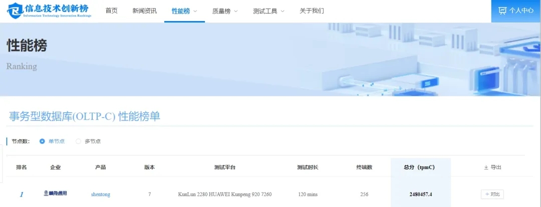 近日,由工業(yè)和信息化部電子第五研究所發(fā)起的“信息技術(shù)創(chuàng)新榜”,發(fā)布了事務(wù)型數(shù)據(jù)庫(OLTP-C)性能榜單,神軟子公司神通公司的神通數(shù)據(jù)庫產(chǎn)品在評(píng)測(cè)中脫穎而出,榮獲第一名。