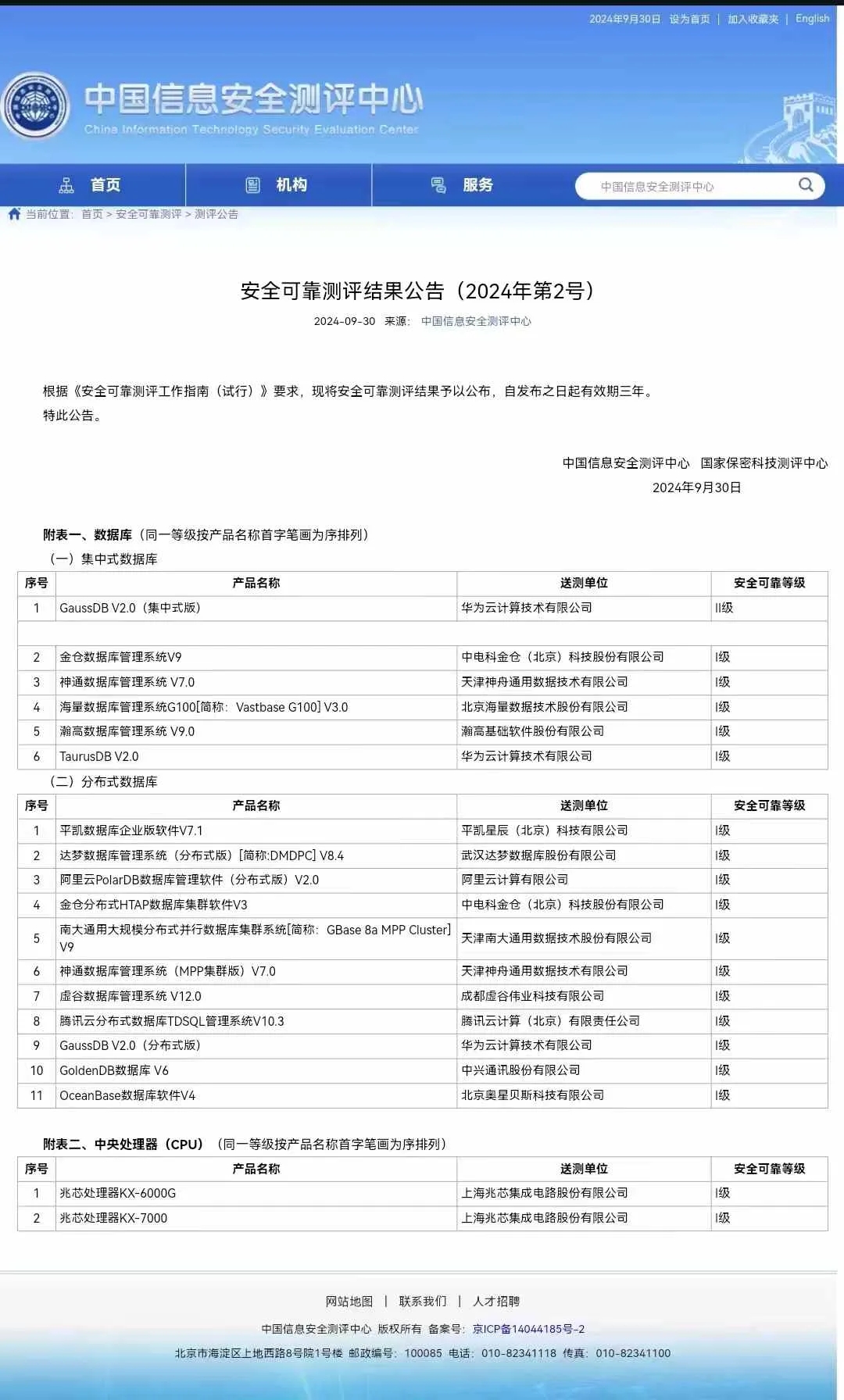 9月30日,中國信息安全測評中心、國家保密科技測評中心發布了《安全可靠測評結果公告(2024年第2號)》。神軟子公司神通公司的集中式數據庫產品神通數據庫管理系統 V7.0、分布式數據庫產品神通數據庫管理系統(MPP集群版)V7.0通過測評,獲得安全可靠等級“I級”。