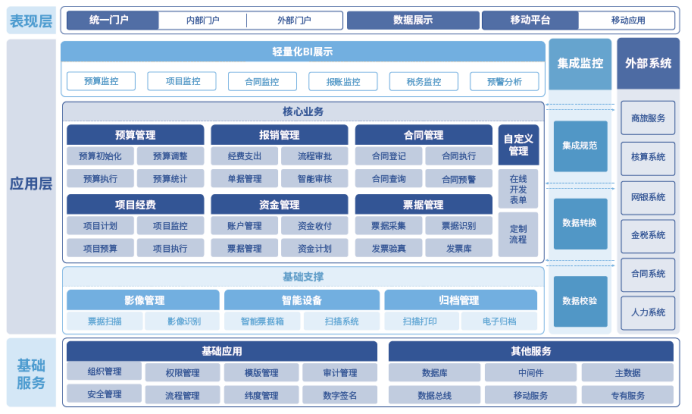 ??財金管控系統(tǒng)是為適應(yīng)集團(tuán)化企業(yè)“戰(zhàn)略管控”、“財務(wù)管控”、“業(yè)務(wù)管控”的管理模式的現(xiàn)狀研發(fā)的產(chǎn)品,擁有“高可用、高擴(kuò)展、高易用”的產(chǎn)品特色,將移動互聯(lián)、人工智能、大數(shù)據(jù)技術(shù)與財務(wù)信息化經(jīng)驗(系統(tǒng)功能、安全保密、模塊劃分、業(yè)務(wù)需求等)積累充分結(jié)合,為企業(yè)提供符合自身業(yè)務(wù)特點的開放型財務(wù)共享服務(wù)平臺。